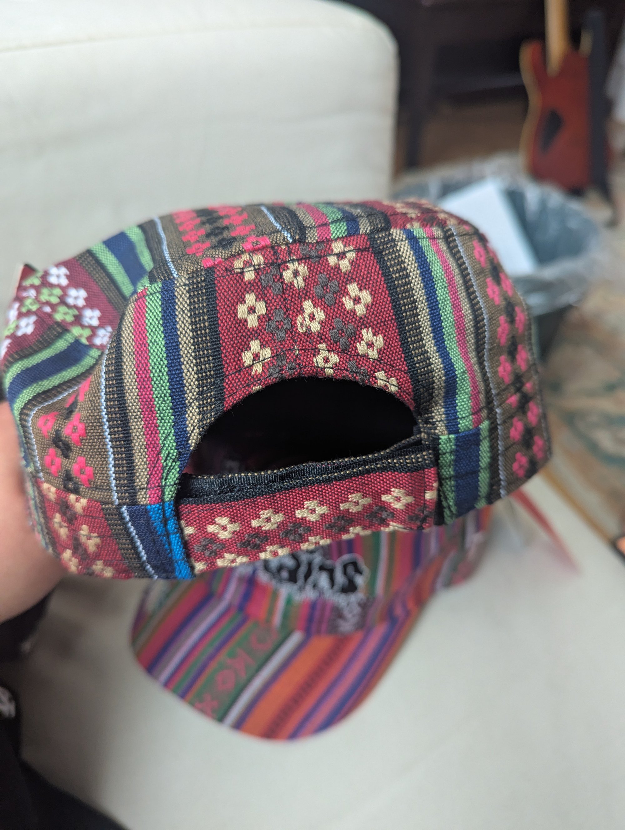 South American print, embroidered, comrade hat, velcro strap, 100% cotton